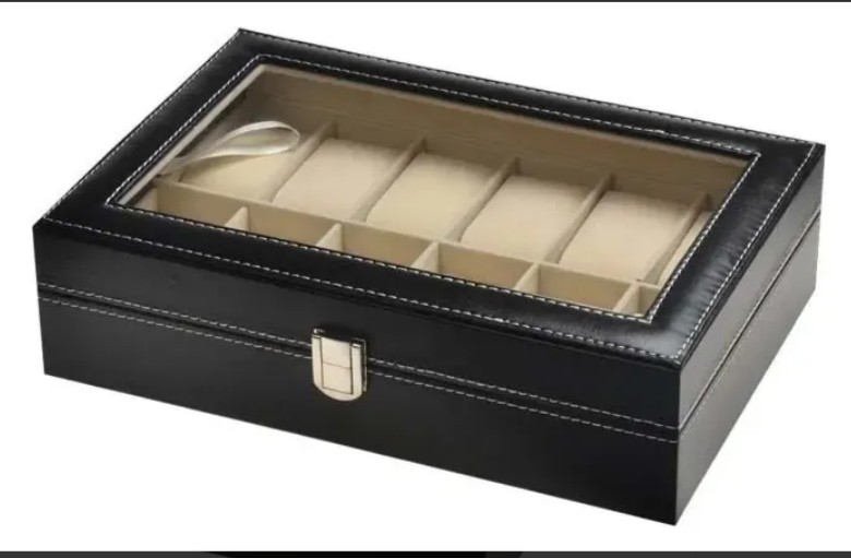 funda de reloj de piel sintética de primera calidad con 12 posiciones con ventana de visualización. Perfecto para coleccionistas y entusiastas de los relojes, este organizador protege y exhibe sus valiosos relojes. TAMAÑO compacto: 30 x 20 x 8 cm.