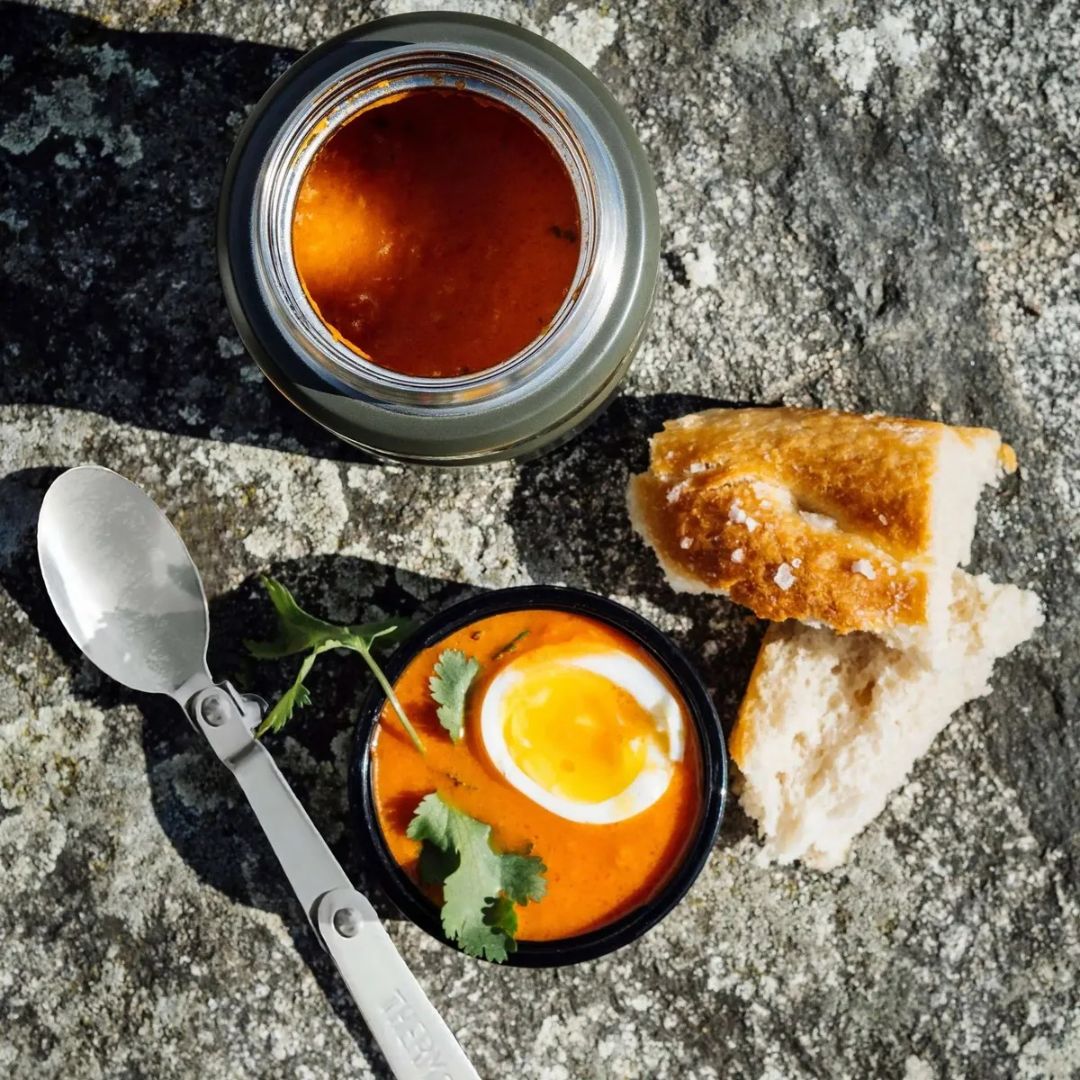 • 🥄 Todo en Uno: Olvídate de llevar cubiertos extras. Incluye una cuchara plegable de acero inoxidable que se guarda mágicamente en la tapa, y su tapa aislada funciona como un práctico tazón para servir.